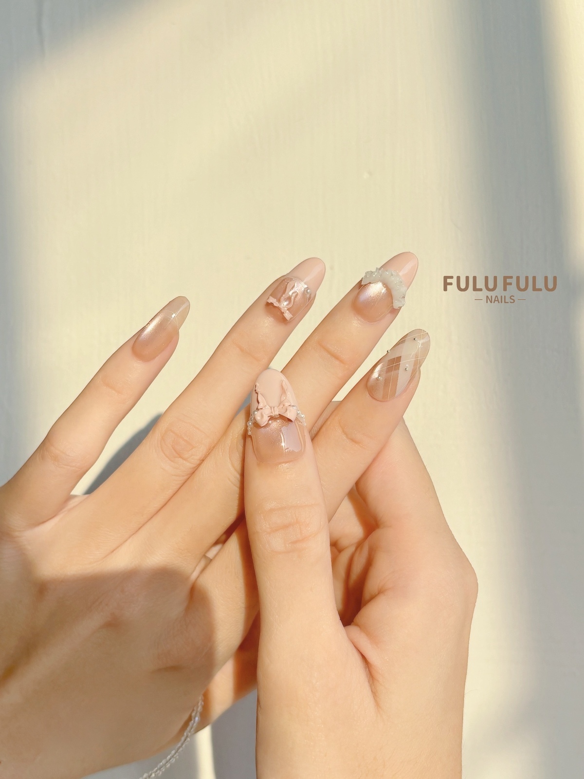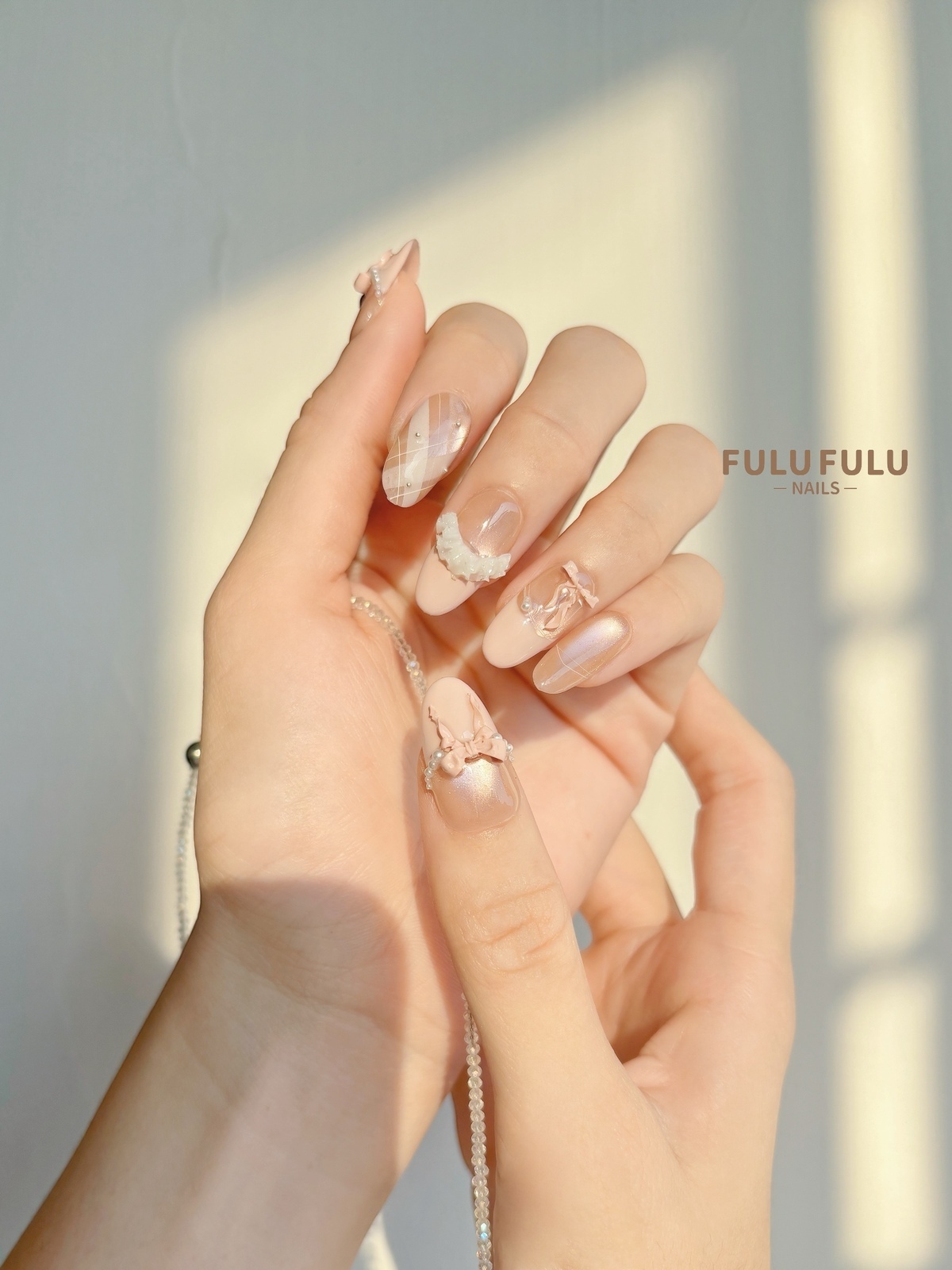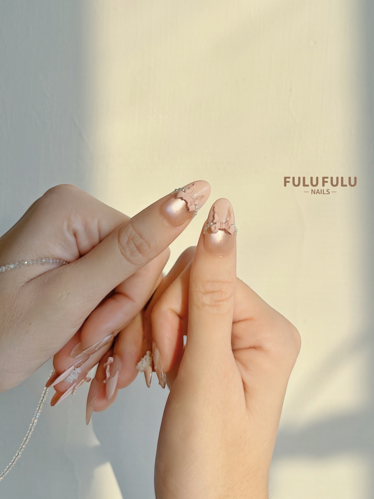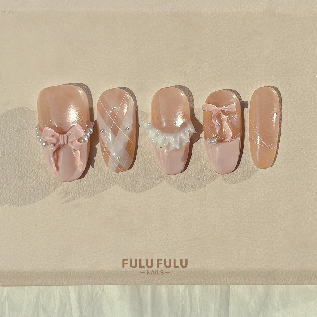 結合緞帶蝴蝶結、珍珠點綴與細線交織,